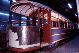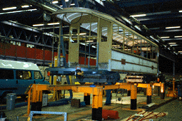 Entre Noël 1993 et novembre 1996, les travaux ont portés sur le second véhicule composant le premier convoi préservé par l’AGMT, à savoir la remorque 363. Le véhicule à d’abord été entièrement démonté, afin d’atteindre la structure, métallique ici.